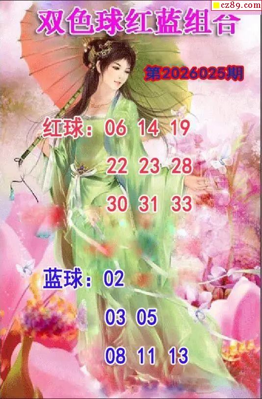仕女红蓝组合26年025期双色球图谜